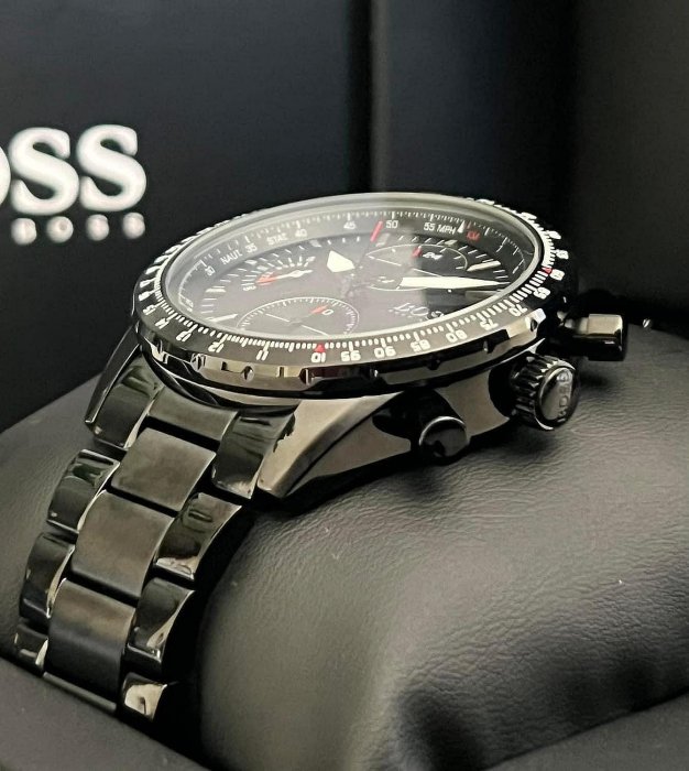 優寶購物《ubao.Tw》特貨品商城,黑貓宅配,取貨付款,現貨HUGO BOSS Pilot Edition 黑色面錶盤 黑色不鏽鋼錶帶 石英 三眼計時 男士手錶1513854 | Yahoo拍賣