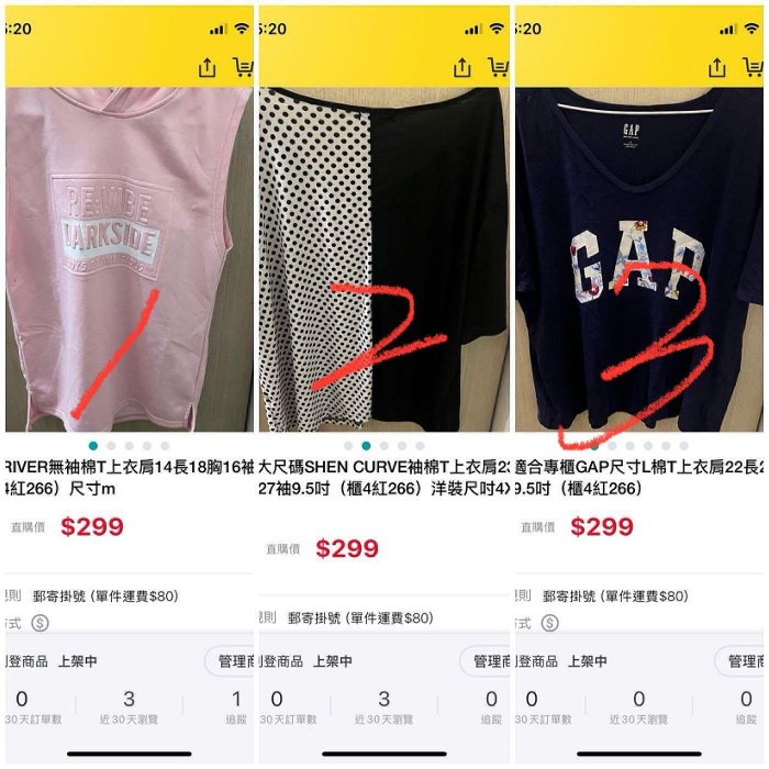 優寶購物《ubao.Tw》特貨品商城,黑貓宅配,取貨付款,(1)粉專櫃RIVER無袖棉T上衣肩14長18胸16袖吋(櫃4紅266)尺寸m(2)大尺碼黑白點4XL(3)GAP尺寸M男女適合每件379含運下標告知1-2-3 | Yahoo拍賣