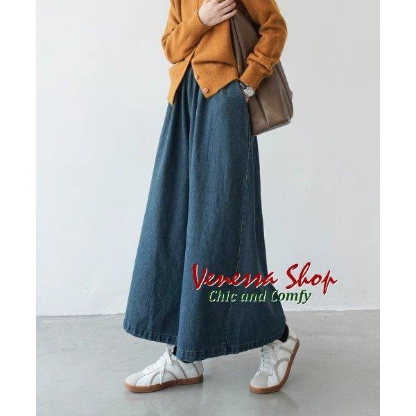 優寶購物《ubao.Tw》特貨品商城,黑貓宅配,取貨付款,VENESSA~ MLT 百搭慵懶風 舒適顯瘦 女の高腰水洗牛仔裙褲 鬆緊腰高腰A字大擺寬褲 (P1646) | Yahoo拍賣