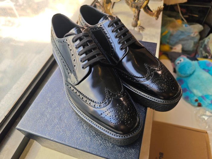 優寶購物《ubao.Tw》特貨品商城,黑貓宅配,取貨付款,PRADA全新真品義大利製黑色厚底雕花德比鞋/皮鞋/上班鞋(適UK8~9.5號)--2.4折出清(不議價商品) | Yahoo拍賣