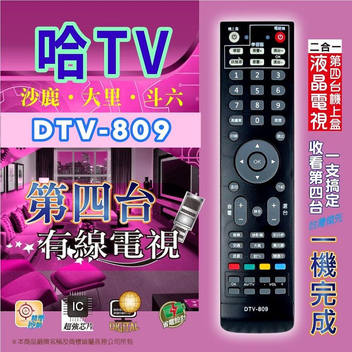 優寶購物《ubao.Tw》特貨品商城,黑貓宅配,取貨付款,【現貨速寄.有開發票】【哈TV】 DTV-809 第四台有線電視數位機上盒 專用遙控器【適用地區:沙鹿.大里.斗六】 | Yahoo拍賣