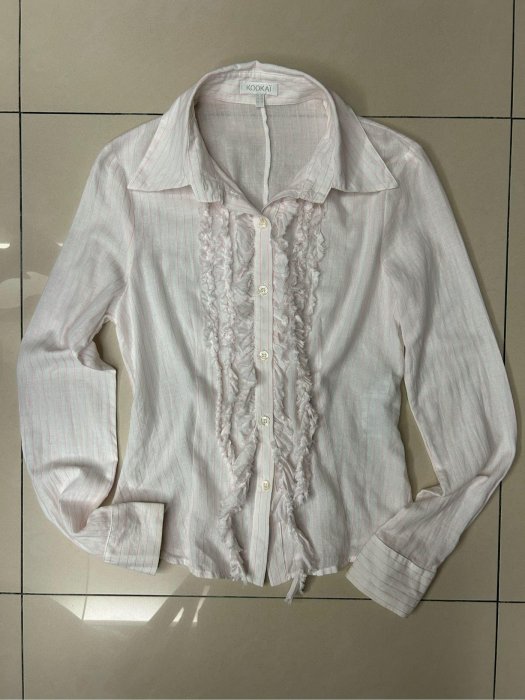 優寶購物《ubao.Tw》特貨品商城,黑貓宅配,取貨付款,KOOKAI 時尚款 粉色條紋抽鬚襯衫 | Yahoo拍賣