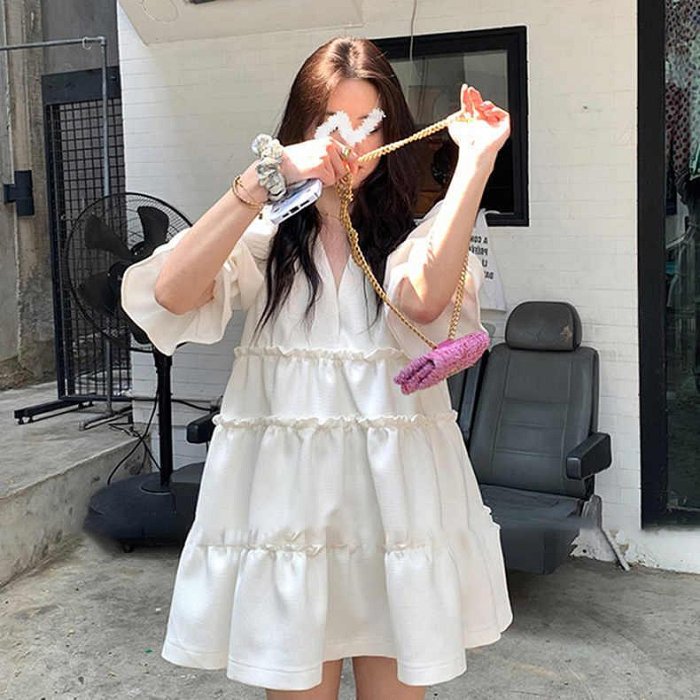 優寶購物《ubao.Tw》特貨品商城,黑貓宅配,取貨付款,【熱賣】孕婦裝夏季法式新款白色泡泡袖洋裝小個子甜美清純奶甜氣質裙子 | Yahoo拍賣