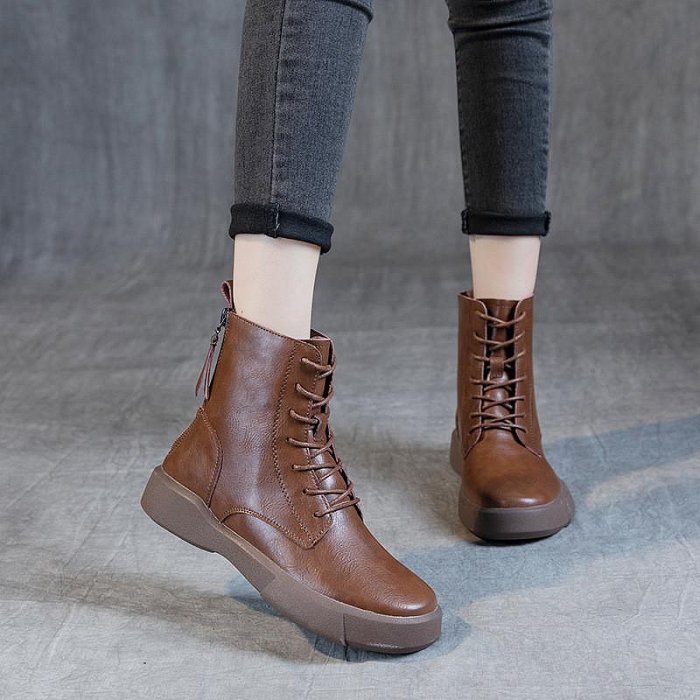 優寶購物《ubao.Tw》特貨品商城,黑貓宅配,取貨付款,女英倫風大碼復古2024秋冬新款後雙拉鍊平底短靴女軟底顯瘦馬丁靴 | Yahoo拍賣