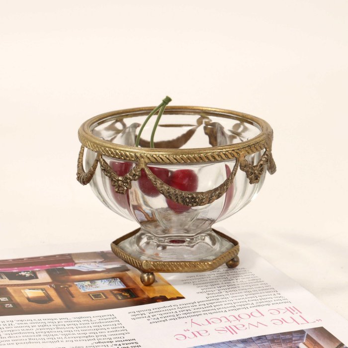 優寶購物《ubao.Tw》特貨品商城,黑貓宅配,取貨付款,玻璃黃銅包邊輕奢復古印度玻璃干果零食碗樣板房別墅餐桌擺件 | Yahoo拍賣