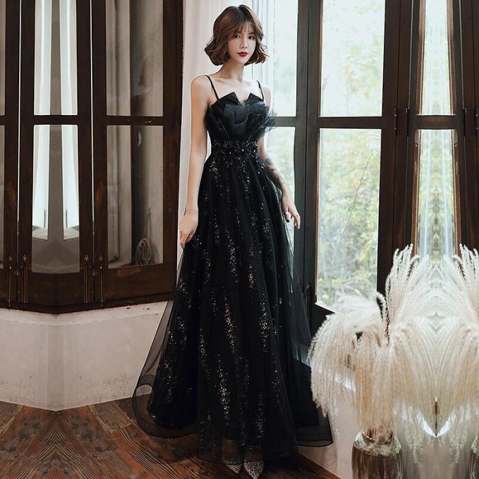 優寶購物《ubao.Tw》特貨品商城,黑貓宅配,取貨付款,【可可】晚禮服2024新款黑色長款吊帶晚禮服露背禮服裙主持人吊帶晚禮服女 | Yahoo拍賣