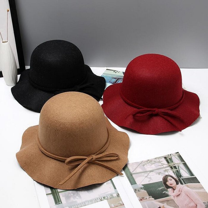 優寶購物《ubao.Tw》特貨品商城,黑貓宅配,取貨付款,秋冬韓版波浪邊蝴蝶結繫帶毛呢帽盆帽子復古休閒百搭氣質小禮帽女 | Yahoo拍賣