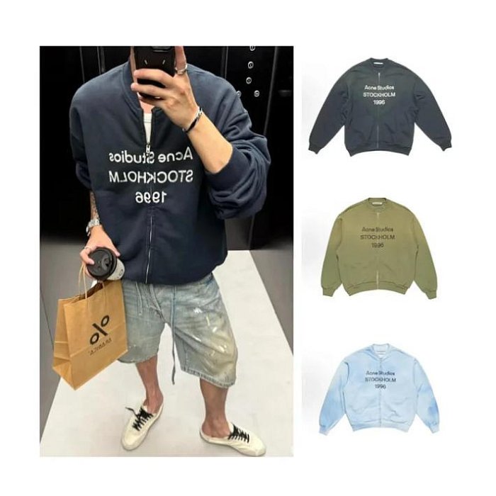 優寶購物《ubao.Tw》特貨品商城,黑貓宅配,取貨付款,高品質480克重磅毛圈 Acne Studios fw1996系列 漸變褪色水洗做舊印花寬松棒球領夾克外套 男女情侶款 | Yahoo拍賣