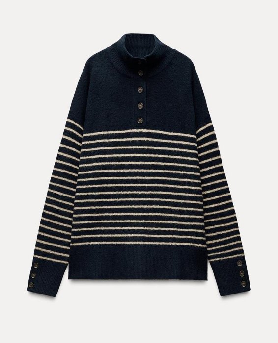 優寶購物《ubao.Tw》特貨品商城,黑貓宅配,取貨付款,ZARA條紋深藍針織毛衣L號 | Yahoo拍賣