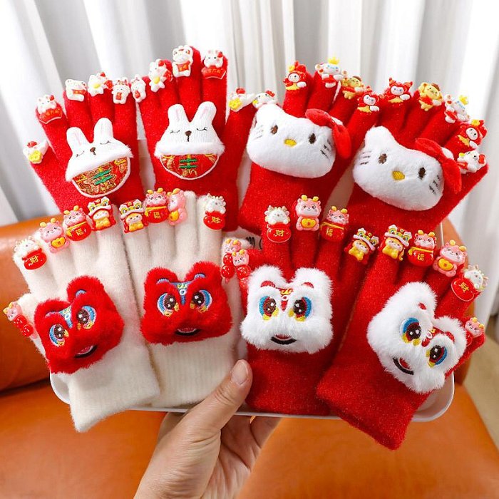 優寶購物《ubao.Tw》特貨品商城,黑貓宅配,取貨付款,新年手套冬季女孩可愛兔子加厚針織五指套冬天過年保暖分指套 | Yahoo拍賣