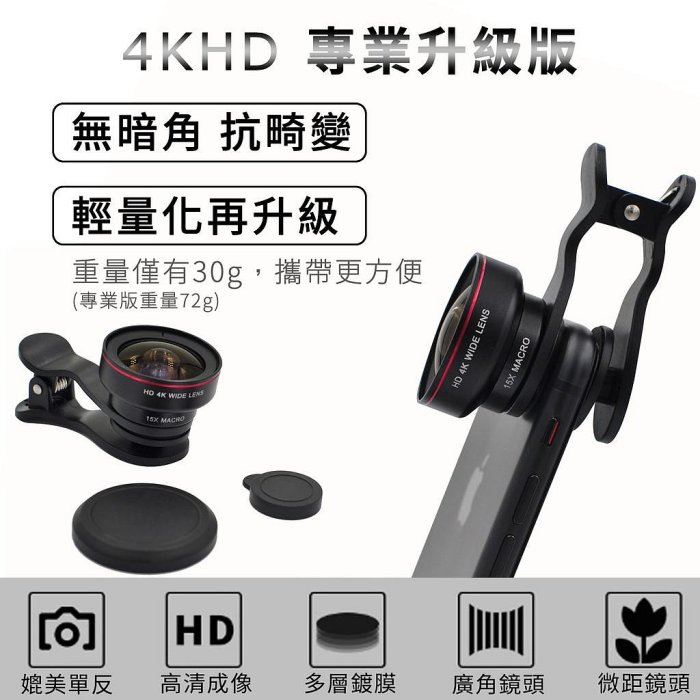 優寶購物《ubao.Tw》特貨品商城,黑貓宅配,取貨付款,【拍照神器】4K HD 0.58X高清廣角 15X微距二合一手機單眼級 抗畸變 廣角鏡頭 無變形 無暗角 自拍神器 | Yahoo拍賣