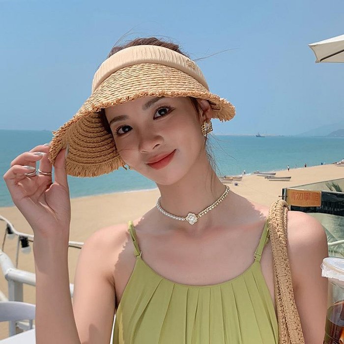 優寶購物《ubao.Tw》特貨品商城,黑貓宅配,取貨付款,草帽2025新款夏季透氣大檐草編空頂帽戶外出游沙灘防曬草帽加粗防風繩 新品 | Yahoo拍賣
