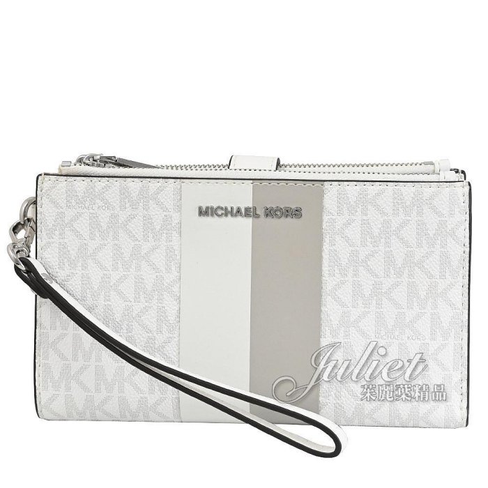 優寶購物《ubao.Tw》特貨品商城,黑貓宅配,取貨付款,【茱麗葉精品】全新商品 MICHAEL KORS 專櫃商品 JET SET 印花條紋手提式雙拉鍊中長夾.白/灰 現貨 | Yahoo拍賣