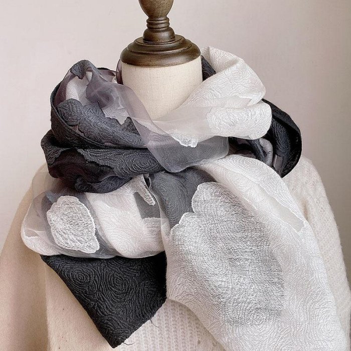 優寶購物《ubao.Tw》特貨品商城,黑貓宅配,取貨付款,朦朧感藝術蕾絲剪花歐根紗漸變薄款披肩圍巾韓版春秋季百搭冬保暖╭☆ Queen☆like* 嚴選女裝 #50013 | Yahoo拍賣