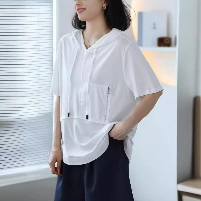 優寶購物《ubao.Tw》特貨品商城,黑貓宅配,取貨付款,連帽短袖T恤上衣 帽衫 帽t 棉質短袖女連帽休閑百搭寬松顯瘦韓版夏季薄款拼接T恤上衣388 ZM020 | Yahoo拍賣