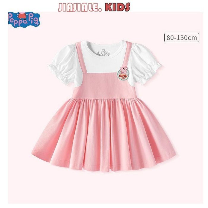 優寶購物《ubao.Tw》特貨品商城,黑貓宅配,取貨付款,粉紅豬小妹 0-7歲小豬佩奇女童假2件套連衣裙2024新款夏季純棉可愛公主裙寶寶短袖裙 | Yahoo拍賣