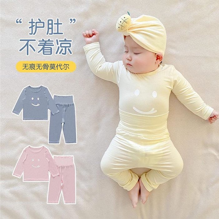 優寶購物《ubao.Tw》特貨品商城,黑貓宅配,取貨付款,嬰兒春款莫代爾家居服套裝寶寶舒適無骨空調服新生兒高腰護肚睡衣 | Yahoo拍賣