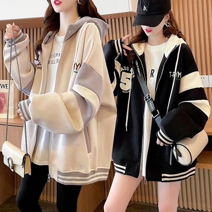 優寶購物《ubao.Tw》特貨品商城,黑貓宅配,取貨付款,慵懶風連帽衛衣女學生春秋薄款寬鬆大碼休閒百搭洋氣棒球服外套女 | Yahoo拍賣