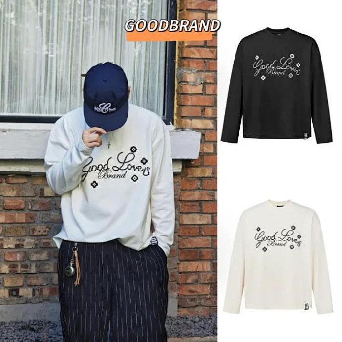 優寶購物《ubao.Tw》特貨品商城,黑貓宅配,取貨付款,春秋必備GOODBRAND 小花標語 GOOD LOVES 刺繡字母 休閒百搭長袖T恤 男女同款 | Yahoo拍賣