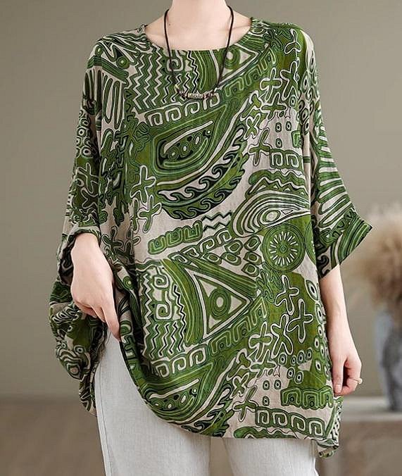 優寶購物《ubao.Tw》特貨品商城,黑貓宅配,取貨付款,女人衣櫥㊕夏秋裝輕熟中年媽媽民族文藝風 胖MM綠色/咖啡色圓領圖騰滿版印花 蝙蝠七分袖中長垂感上衣罩衫 不挑身材大尺碼超大胸178.S387♥ | Yahoo拍賣