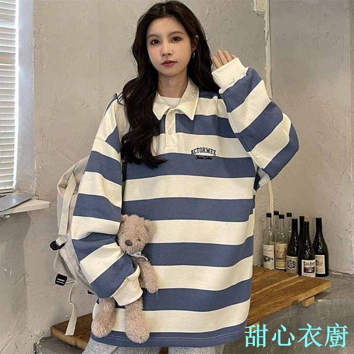 優寶購物《ubao.Tw》特貨品商城,黑貓宅配,取貨付款,150公斤可穿 胖MM條紋polo衫 大學T女 秋季新款 慵懶風 bf薄款設計感小眾衛衣女 大尺碼上衣 大尺碼女裝 | Yahoo拍賣