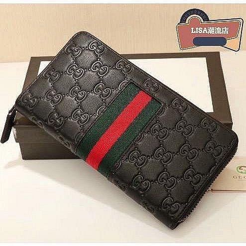 優寶購物《ubao.Tw》特貨品商城,黑貓宅配,取貨付款,LS Gucci 古馳 長款拉鏈銀包 經典GG 黑色壓紋logo 帆布綠紅綠 拉鍊長夾 錢包 408831 | Yahoo拍賣