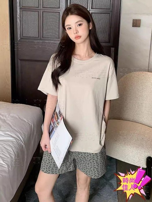 優寶購物《ubao.Tw》特貨品商城,黑貓宅配,取貨付款,時尚佳人=帶胸墊睡衣女夏季短袖仿棉套裝休閑可外穿寬松大碼200斤家居服女 | Yahoo拍賣