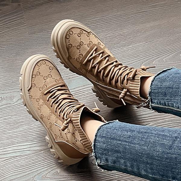 優寶購物《ubao.Tw》特貨品商城,黑貓宅配,取貨付款,DG韓系鞋坊-正韓 韓國空運 東大門熱銷🔥個性印花針織布拉鏈短靴 時尚休閒鞋 厚底顯瘦馬丁靴【23F0044】現貨+預購 | Yahoo拍賣
