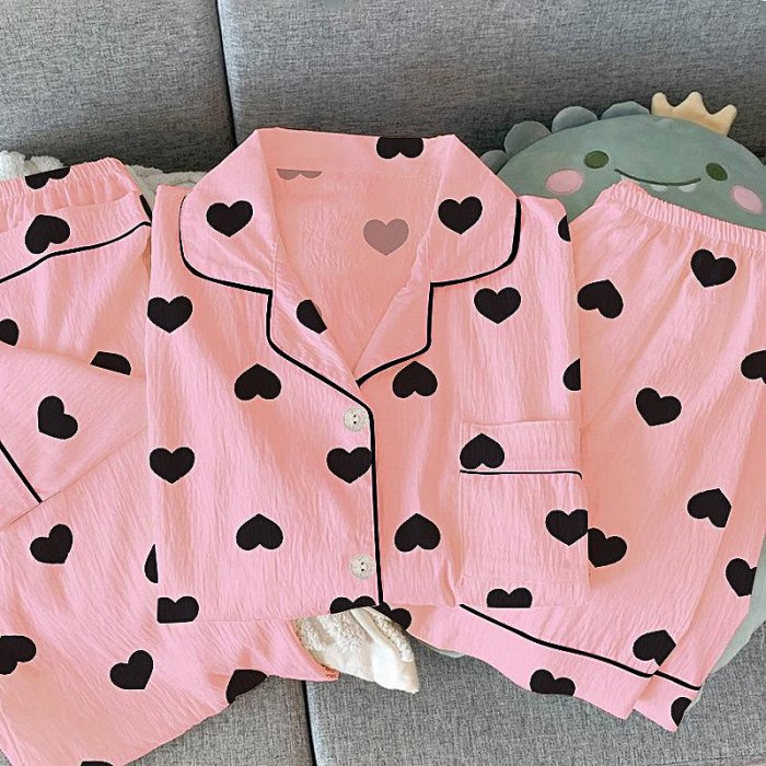 優寶購物《ubao.Tw》特貨品商城,黑貓宅配,取貨付款,夏季居家服套裝女 居家服 成套睡衣 短袖短褲長褲三件套睡衣 甜美日系愛心皺布睡衣女士高級感夏天家居服短袖三件套裝實拍 YM022 | Yahoo拍賣