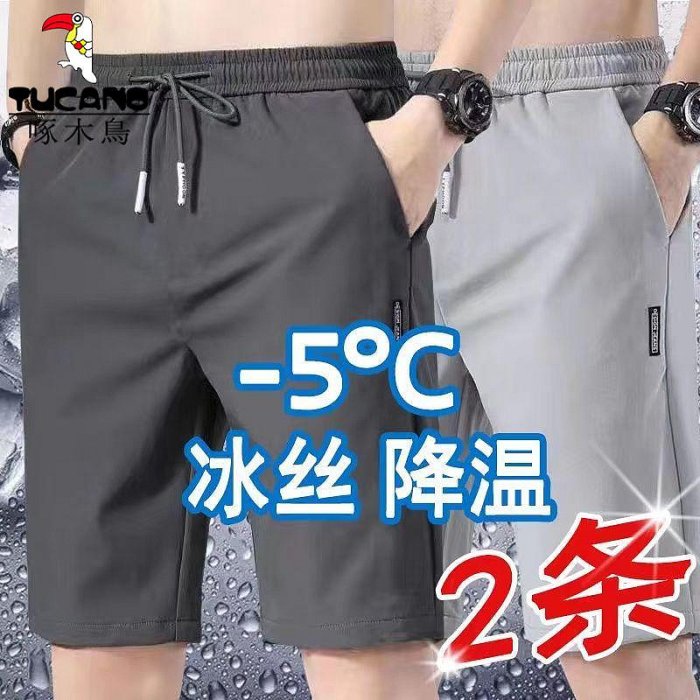 優寶購物《ubao.Tw》特貨品商城,黑貓宅配,取貨付款,啄木鳥夏季超薄款冰絲短褲男休閑五分褲寬松速干運動大碼空調褲子 | Yahoo拍賣