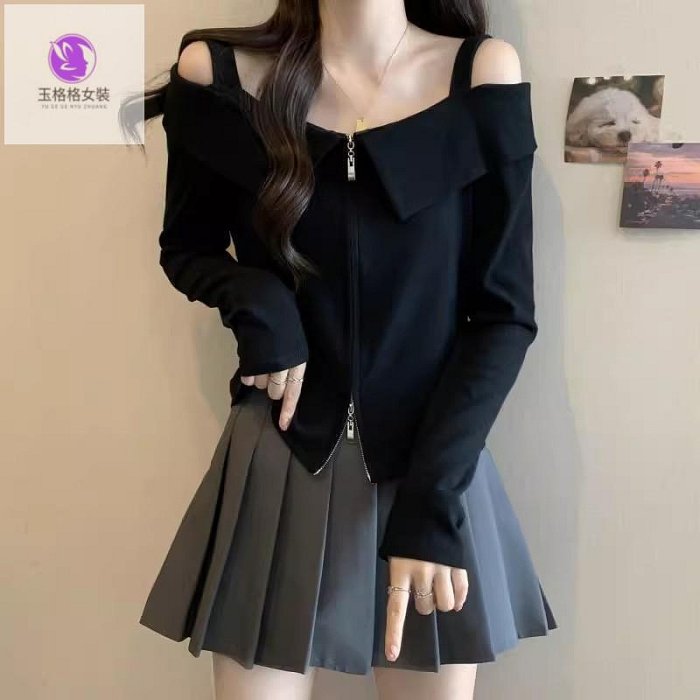 優寶購物《ubao.Tw》特貨品商城,黑貓宅配,取貨付款,【】爆款秋裝女 新款大尺碼法式甜辣鎖骨一字領t恤 拉鍊長袖上衣高級感 | Yahoo拍賣