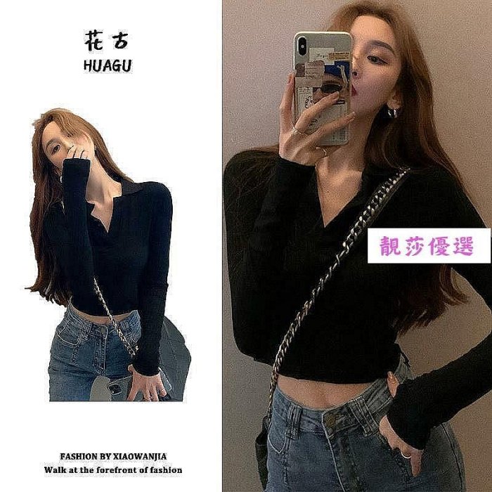 優寶購物《ubao.Tw》特貨品商城,黑貓宅配,取貨付款,【現貨】【限時下殺】早秋新品✨甜辣polo領短款純欲上衣女2025初秋新款長袖法式小眾設計感打底衫-靚莎優選 | Yahoo拍賣