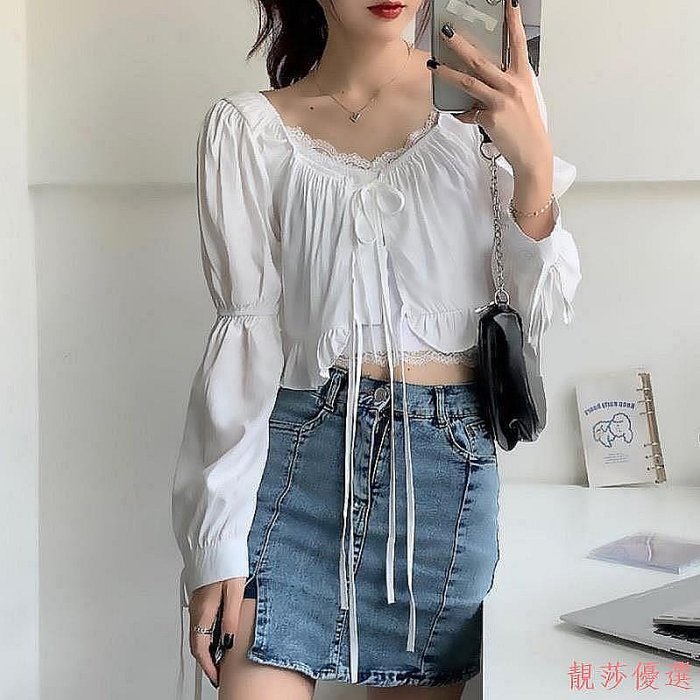優寶購物《ubao.Tw》特貨品商城,黑貓宅配,取貨付款,M06 現貨🔥清新感升級💗氣質法式法式袖襯衫上衣/雪紡衫/花邊短版上衣-靚莎優選 | Yahoo拍賣