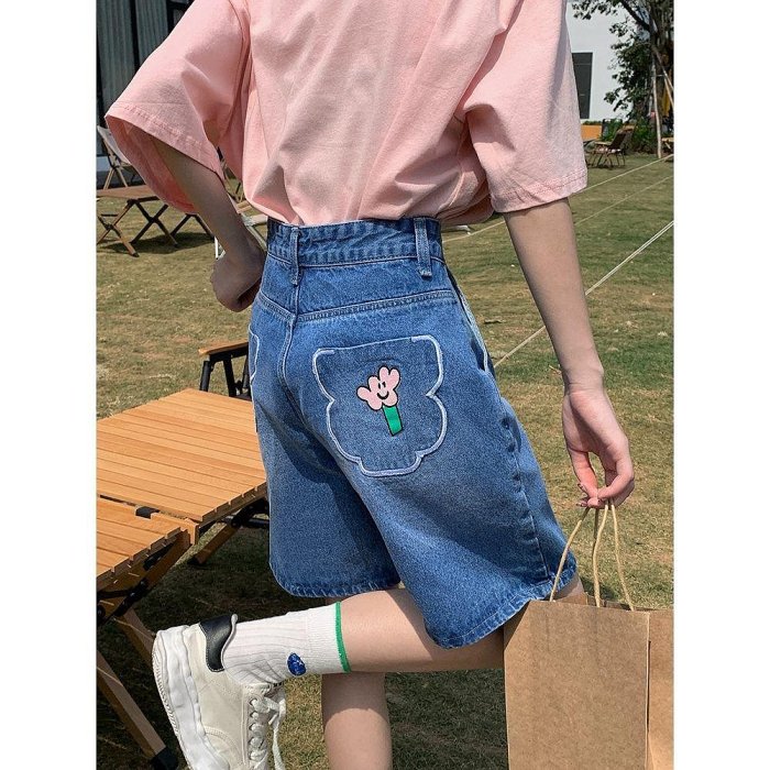 優寶購物《ubao.Tw》特貨品商城,黑貓宅配,取貨付款,刺繡牛仔短褲女高腰夏季設計感小眾寬鬆復古五分褲五分褲ins潮 | Yahoo拍賣