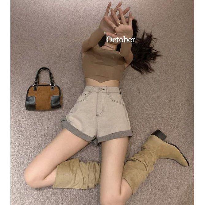 優寶購物《ubao.Tw》特貨品商城,黑貓宅配,取貨付款,港味 百搭 灰色 牛仔褲 女 夏季 薄款 設計感小眾 卷邊 高腰 熱褲 時尚 短褲 潮 | Yahoo拍賣