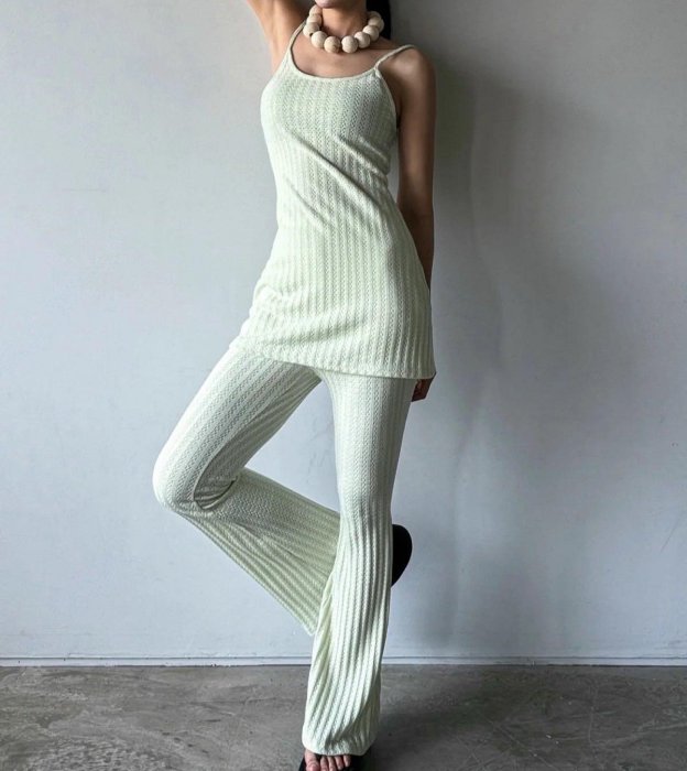 優寶購物《ubao.Tw》特貨品商城,黑貓宅配,取貨付款,正韓 純色鏤紋吊帶背心+微喇長褲休閒套裝SET 2色 韓國東大門代購 JOJO KOREA 05A803-HR | Yahoo拍賣