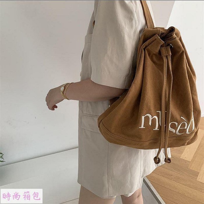 優寶購物《ubao.Tw》特貨品商城,黑貓宅配,取貨付款,【新品上新】【限時搶購】日韓小眾ins新款抽繩雙肩背包刺繡字母大容量水桶包旅行包托特包 | Yahoo拍賣
