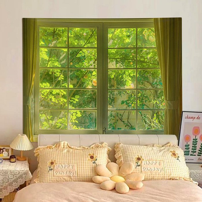 優寶購物《ubao.Tw》特貨品商城,黑貓宅配,取貨付款,跨境以假亂真窗外風景掛毯 數碼印花滌綸掛布 ins直播背景裝飾布 | Yahoo拍賣