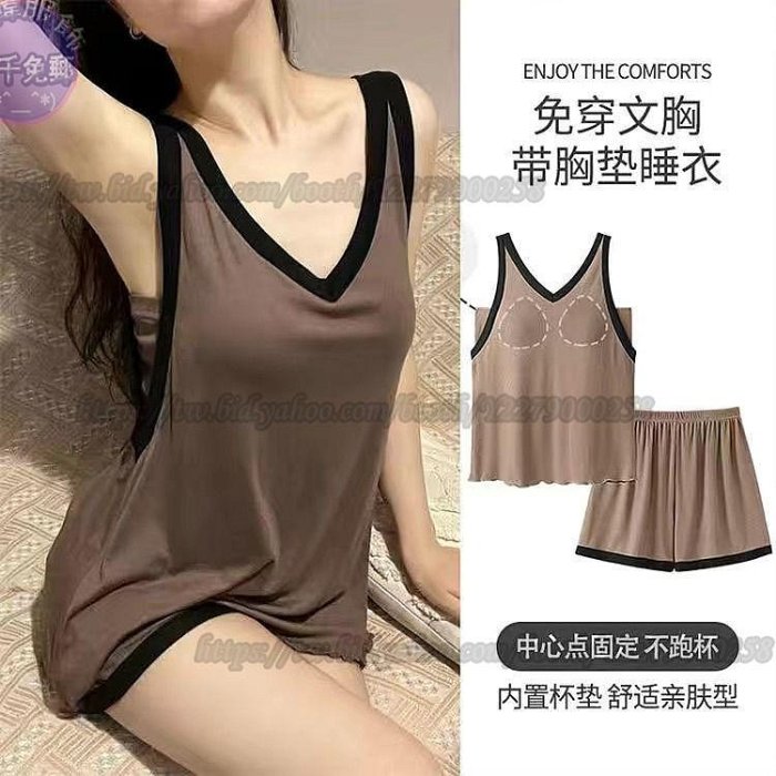 優寶購物《ubao.Tw》特貨品商城,黑貓宅配,取貨付款,日韓服飾=莫代爾無袖背心女夏季自帶固定一體式胸墊家居服睡衣短褲兩件套裝=睡衣睡裙家居服套裝 | Yahoo拍賣