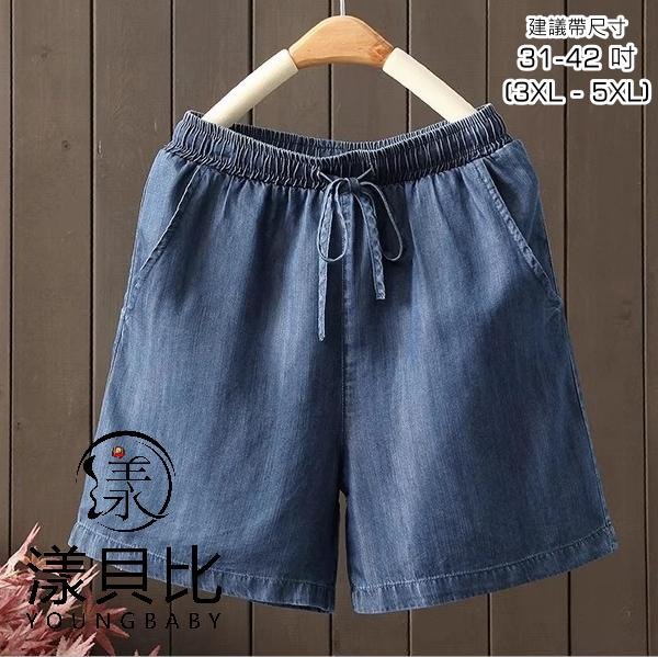 優寶購物《ubao.Tw》特貨品商城,黑貓宅配,取貨付款,漾貝比【9155555】中大尺碼女裝 鬆緊腰綁帶清爽天絲牛仔五分褲.深藍(31-42) | Yahoo拍賣