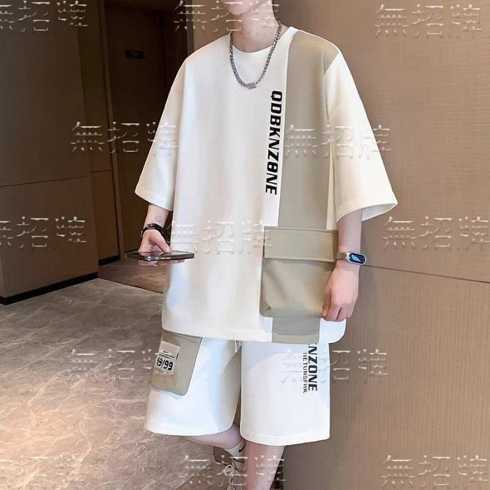 優寶購物《ubao.Tw》特貨品商城,黑貓宅配,取貨付款,無招牌廠家直銷店=帥氣休閑運動套裝男裝夏季新款青少年寬松短袖T恤學生短褲兩件套 | Yahoo拍賣