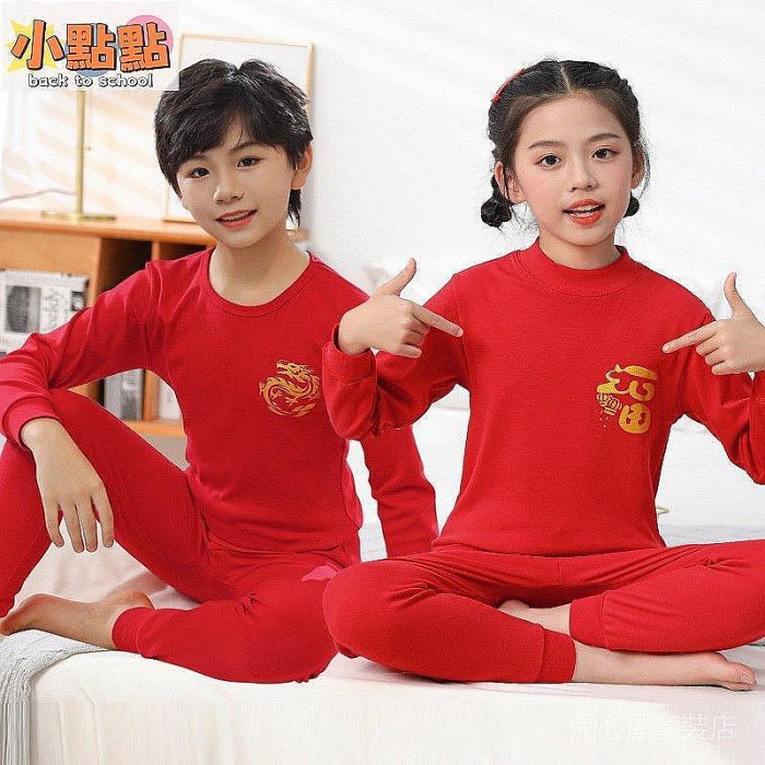 優寶購物《ubao.Tw》特貨品商城,黑貓宅配,取貨付款,【小點點】140cm以上儿童本命年内衣套装龙年大红色纯棉男女童棉毛衫中小大童秋衣秋裤 | Yahoo拍賣