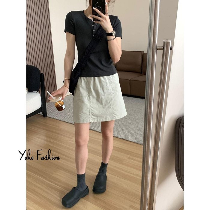 優寶購物《ubao.Tw》特貨品商城,黑貓宅配,取貨付款,YOHO 大長腿休閑短裙 實拍復古工裝風輕薄透氣防走光A字短裙 (DXQ25038) | Yahoo拍賣