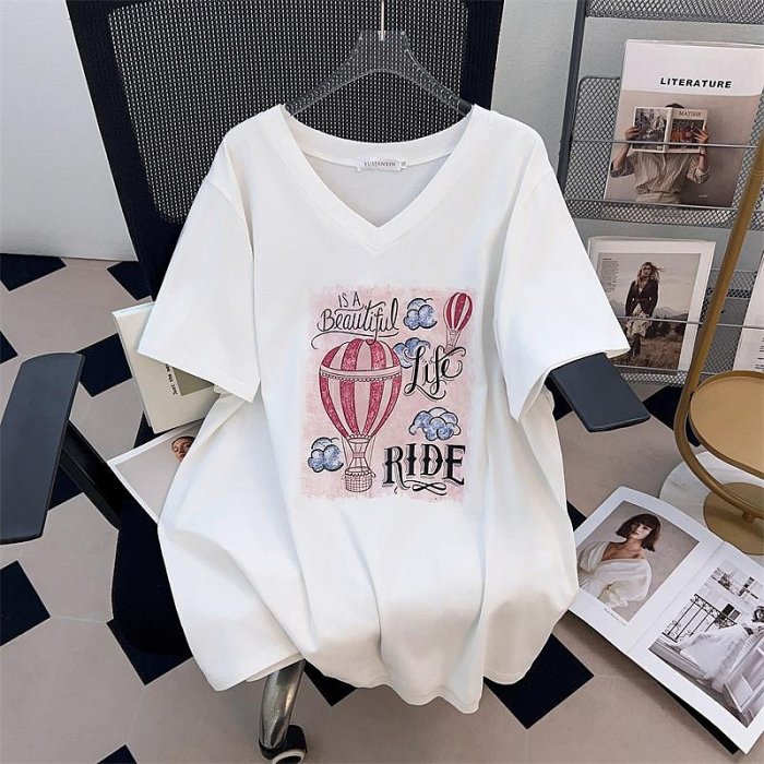 優寶購物《ubao.Tw》特貨品商城,黑貓宅配,取貨付款,大尺碼V領寬鬆T恤熱氣球印花寬鬆上衣2XL-7XL M | Yahoo拍賣