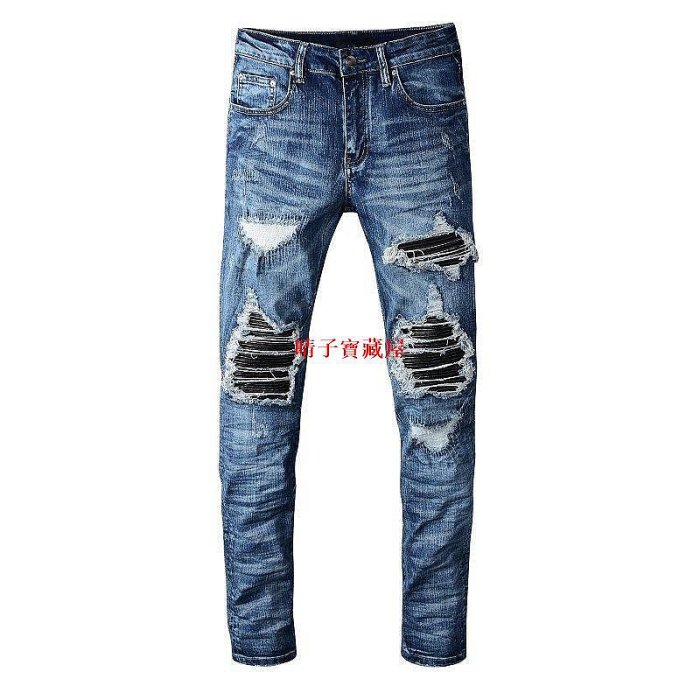 優寶購物《ubao.Tw》特貨品商城,黑貓宅配,取貨付款,歐美潮流 深藍色破洞補丁牛仔褲男青年彈力修身顯瘦小腳褲 612·晴子寶藏屋 | Yahoo拍賣