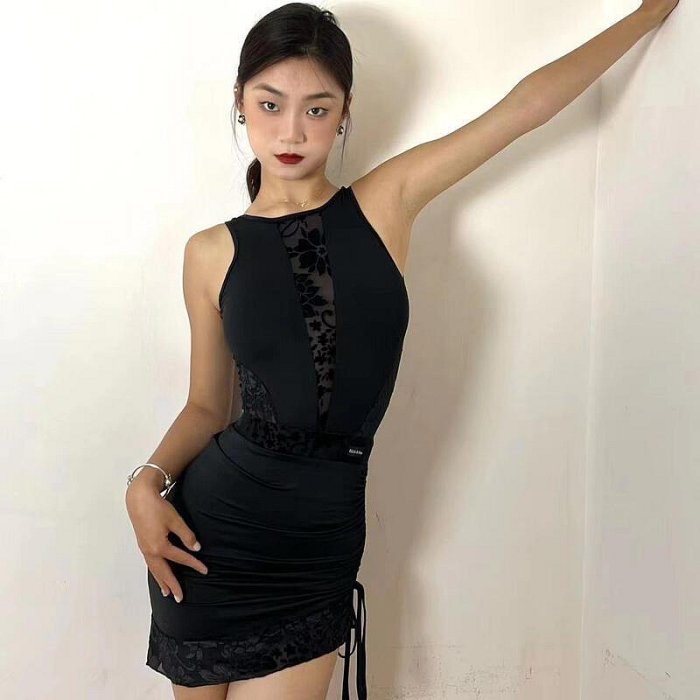 優寶購物《ubao.Tw》特貨品商城,黑貓宅配,取貨付款,Ella拉丁舞服植絨拼接連身衣美背露背上衣練功服女士 | Yahoo拍賣