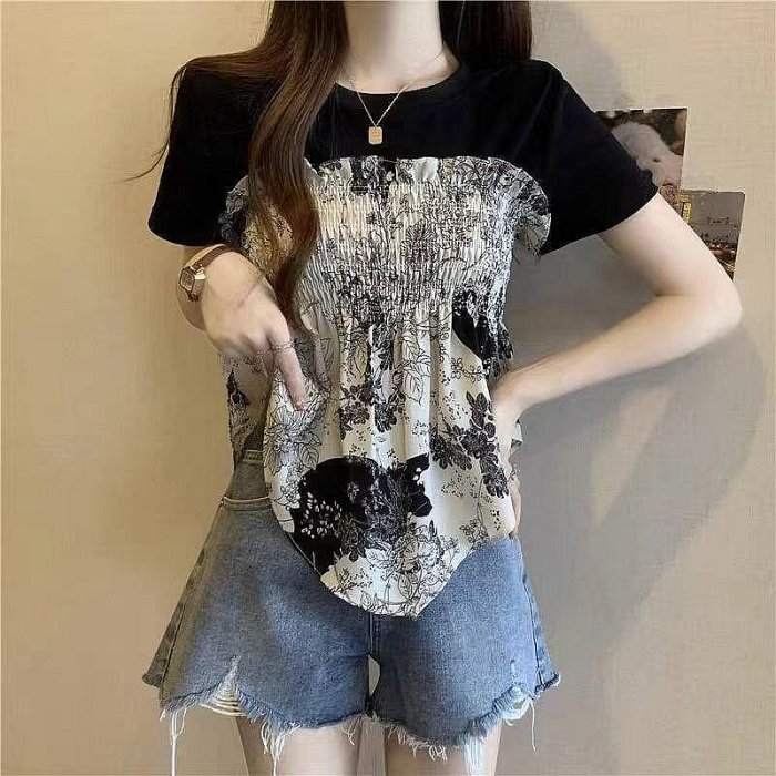 優寶購物《ubao.Tw》特貨品商城,黑貓宅配,取貨付款,不規則假兩件印花短袖T恤女夏季大尺碼胖mm顯瘦設計感炸街小衫上衣 背心上衣 顯瘦上衣 吊帶上衣 女裝-悅享樂購 | Yahoo拍賣