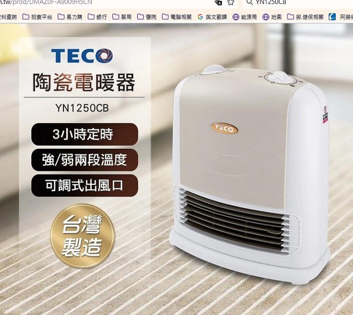 優寶購物《ubao.Tw》特貨品商城,黑貓宅配,取貨付款,易力購【 TECO 東元原廠正品全新】 電暖器 YN1250CB 全省運送 | Yahoo拍賣