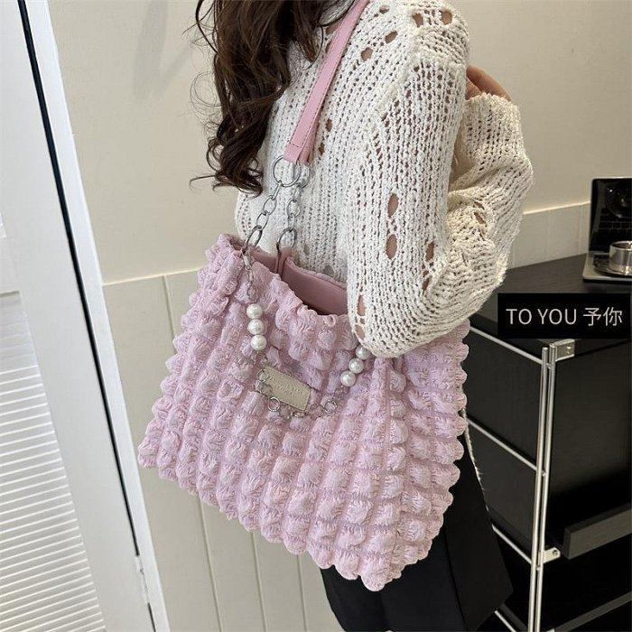 優寶購物《ubao.Tw》特貨品商城,黑貓宅配,取貨付款,韓國褶皺泡泡包包女 ins大容量單肩托特包 手提購物袋 大容量雲朵包-予你優選 | Yahoo拍賣
