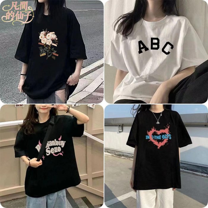 優寶購物《ubao.Tw》特貨品商城,黑貓宅配,取貨付款,凡間的仙子·2024女裝新款春夏季圓領印花短袖T恤女學生夏季寬松慵懶上衣 | Yahoo拍賣